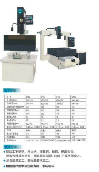 能加工不銹鋼、淬火鋼、磨具鋼、碳鋼、硬質(zhì)合金、鋁等各種導(dǎo)電材料;能直接從斜面、曲面、不規(guī)格面穿入。